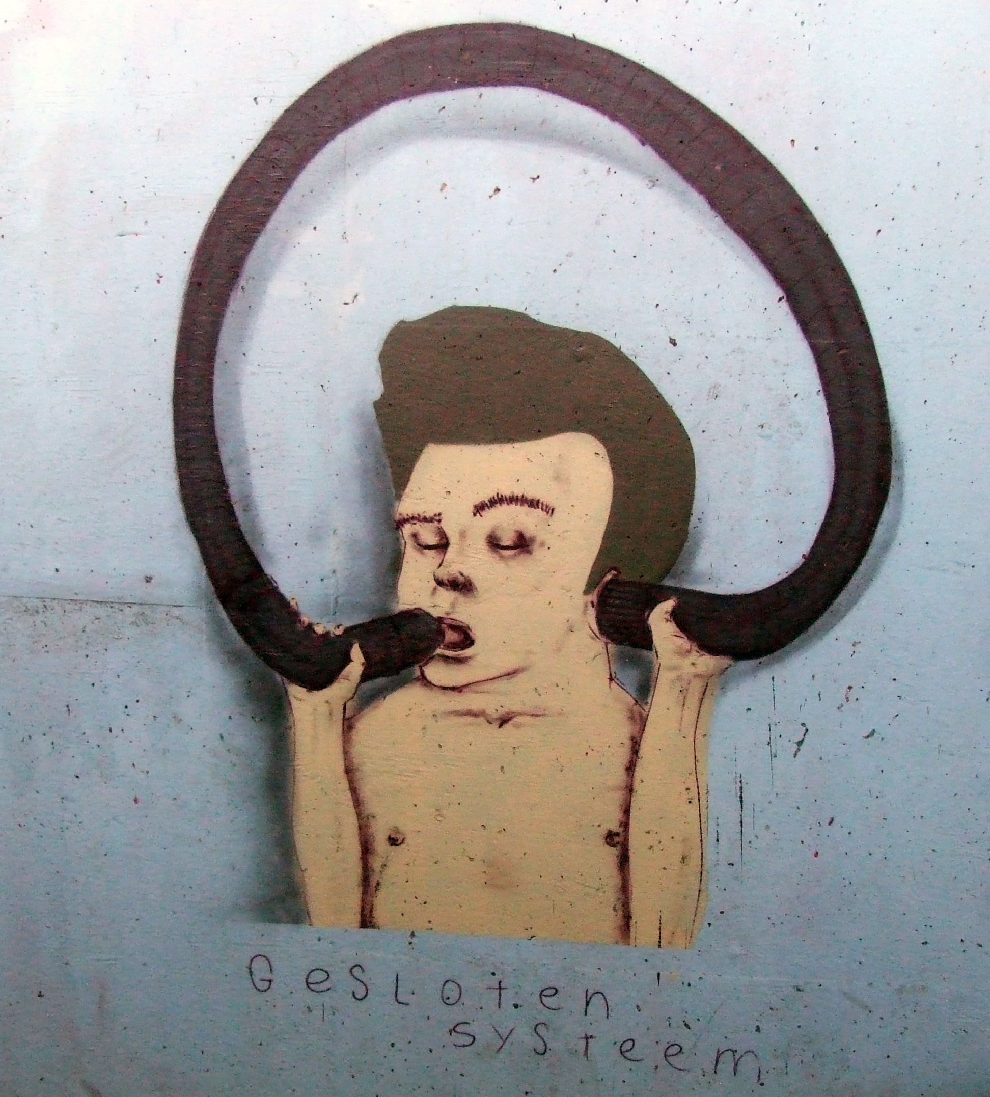 (This bit of Belgian graffiti is titled “Gesloten systeem” or, in English, “Closed system”)