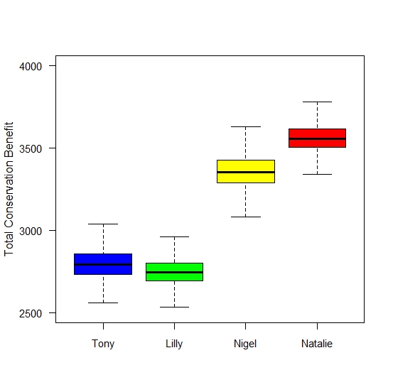 Natalie, with her Type A personality, outperformed everyone… In fact, it wasn’t even close. Dreary, number-crunching Nigel got himself second place by always choosing the cheapest option. Lilly, the only ecologist and arguably the only deputy-director with sincere motives driven by environmental consciousness, came dead last! Even Tony, who might just as well have rolled dice to make his decisions, beat her.